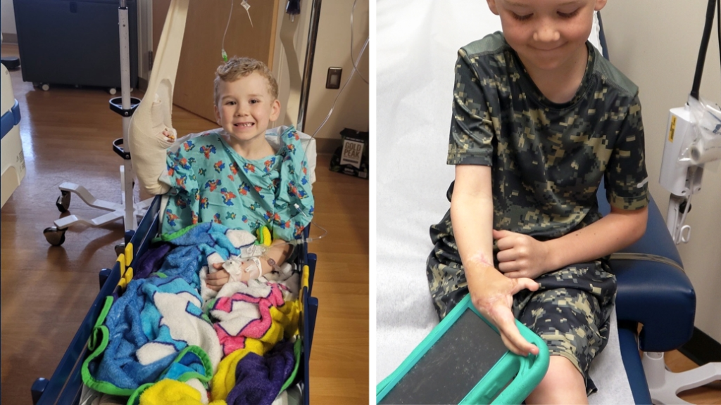 Now seven, Dawson is back to playing soccer, running in the yard, laughing with friends. The thumb from his toe doesn’t look the same as the one he lost, but it gives him freedom, strength, and hope. Every time he moves it, every time he grips something new, it’s proof of resilience.
