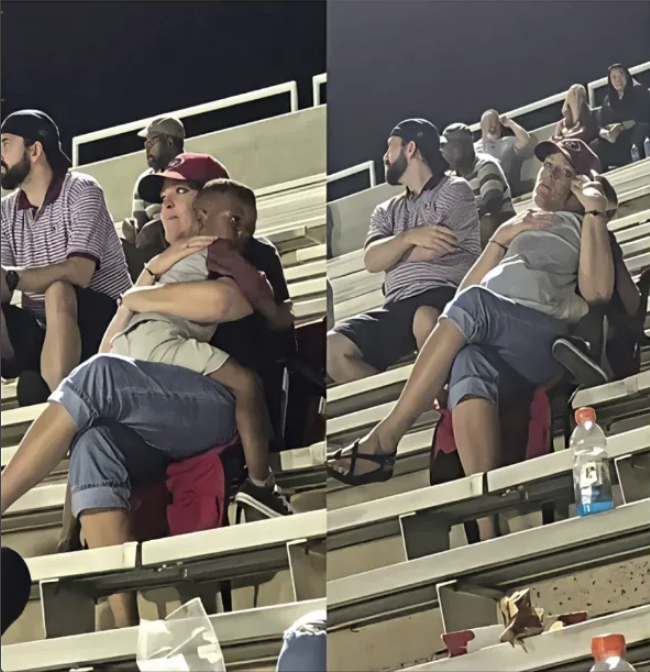 A week later, at the next game, Isaiah scanned the crowd. And there she was. The kind lady from last time. His face lit up. He smiled—the kind of pure, uncomplicated joy that children radiate when they see someone they’re genuinely happy to see—and without asking permission or announcing his intentions, he climbed right back into her lap.