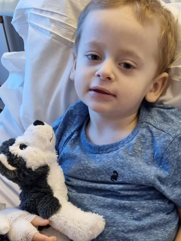 The hospital room was quiet, except for the steady rhythm of machines and the gentle rustle of nurses moving in and out. In the middle of it all sat a little boy, no older than two or three, clutching his stuffed husky dog as if it were his shield. His name was not shouted, not written in headlines—but his story carries the weight of every child who has had to fight too soon.