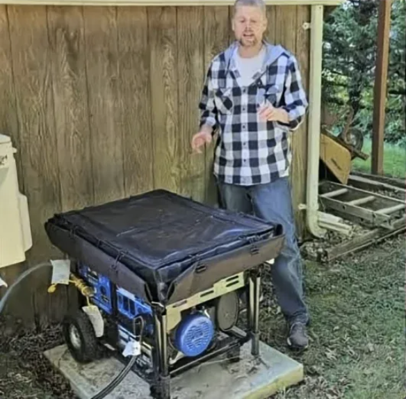 The photo shows Dale standing beside his portable generator—a sturdy, practical piece of equipment that farmers keep for emergencies. He’s wearing a plaid shirt, looking comfortable and unremarkable. Just a farmer who did what seemed obvious to him: neighbors needed power, he had a generator, so he shared it.