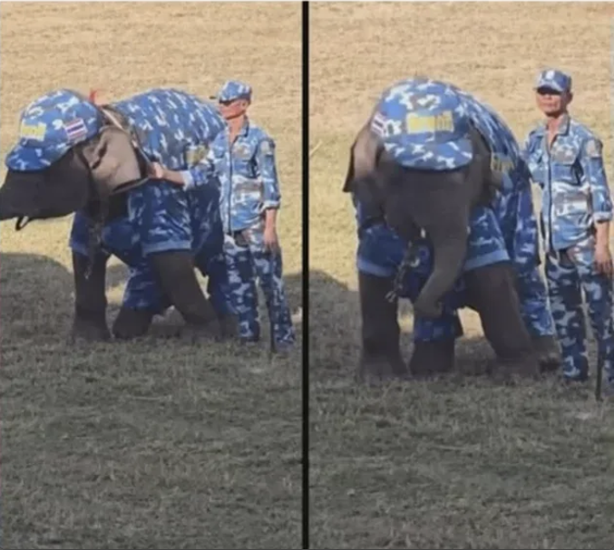At a Thai elephant rescue unit, rangers gave their orphaned calf a matching blue uniform so he’d feel part of the squad. Not just tolerated or housed, but included—officially part of the team, with his own uniform proving he belonged.