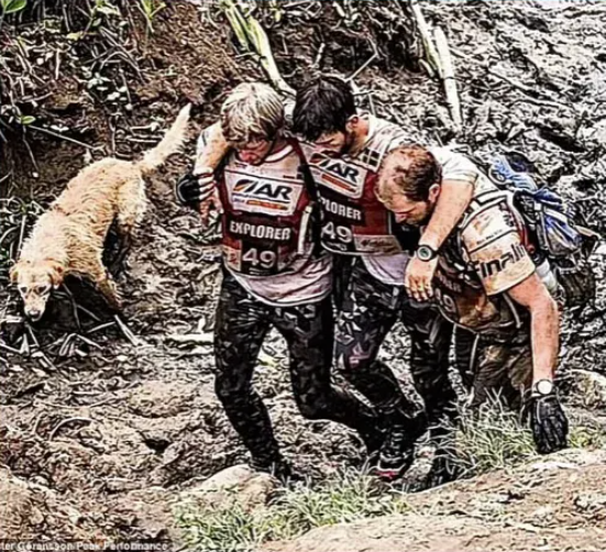 The team was deep into the race—heat, mud, exhaustion, dangerous rivers—when they noticed a scruffy stray dog watching them. One of the team members tossed him a meatball, a small act of kindness in the middle of an unforgiving jungle. And from that moment on, the dog decided they were his people.