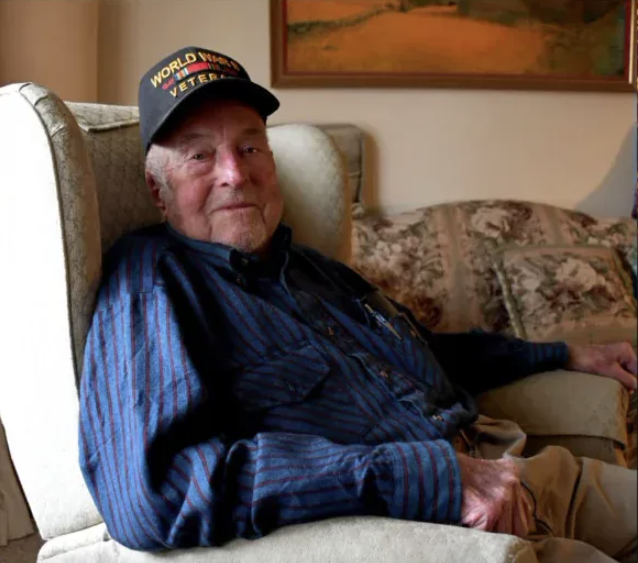 The photograph shows Mr. Henson sitting in his recliner in what appears to be a modest but comfortable home. He’s wearing a “World War II Veteran” cap, suggesting he’s not just any 89-year-old but someone who served during the war, someone who’s lived through extraordinary history. He’s smiling at the camera—probably Linda taking the photo—looking content and cared for.