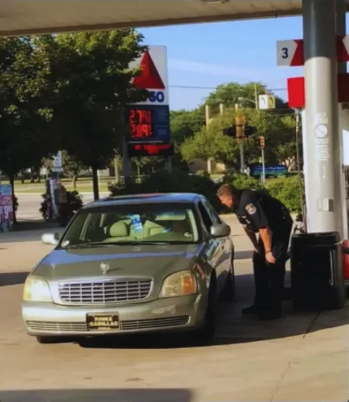 He’d been filling up his patrol car, running through the mental checklist that comes with a long shift—calls to follow up on, reports to file, the endless rhythm of a job that never really stops. But something about the way the woman sat in her car, unmoving, caught his attention. The way her shoulders were hunched. The way she seemed to be gathering courage just to open the door.
