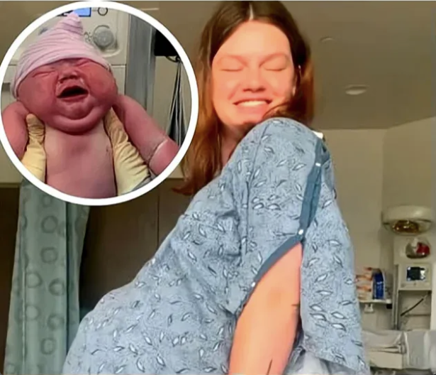 The photos went viral because people couldn’t believe what they were seeing. The inset photo shows Cassian moments after birth—mouth wide open in a cry, looking absolutely massive compared to the gloved hands holding him. The main photo shows Shelby smiling in recovery, looking simultaneously exhausted and amazed by what she’d just accomplished.