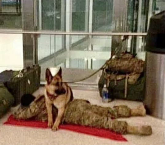 That soldier will wake up eventually. Will stretch, gather his gear, and continue his journey home. And the dog will follow, just as he always has. But for now, in this terminal, in this moment, the dog is doing what he was born to do. Not because he was trained. But because he loves.