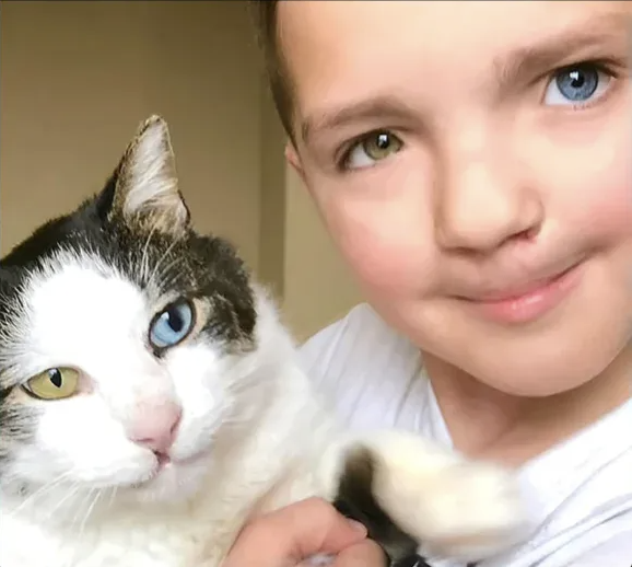 Instead, she went looking for a solution. And one morning, scrolling through social media, she found it: a cat with two different colored eyes. Just like her son’s. A cat that looked, in its own way, exactly like him.