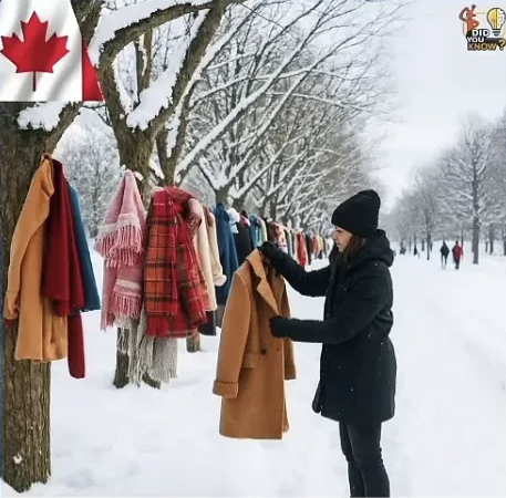 And yet, even in the coldest months, acts of kindness bloom. Across Canada, in cities like Halifax, Toronto, and Ottawa, a quiet tradition has taken root. No official program. No government initiative. Just people, ordinary people, deciding to do something small that might save a life. They hang coats on trees. Scarves. Hats. Warm clothing draped over branches in public spaces, with simple handwritten notes attached: “If you’re cold, take one.”