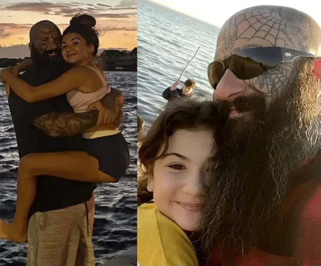 The photographs show their reunion — father and daughter embracing, her wrapped in his arms looking relieved and exhausted. Another image shows them together on what appears to be the water, both smiling, the nightmare over, safety restored.