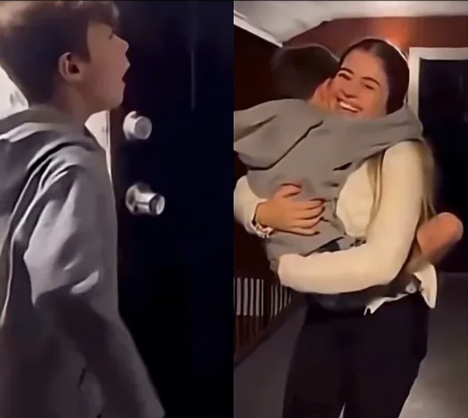 The video captures what happens next—the moment disbelief transforms into joy. The moment his face changes from confusion to recognition to pure, unfiltered happiness. And then he’s in her arms, and she’s holding him, and both of them are experiencing the kind of reunion that makes observers cry even though they don’t know these people, have never met them, have no connection to their story except the universal recognition of what it looks like when love that’s been separated finally finds its way home.