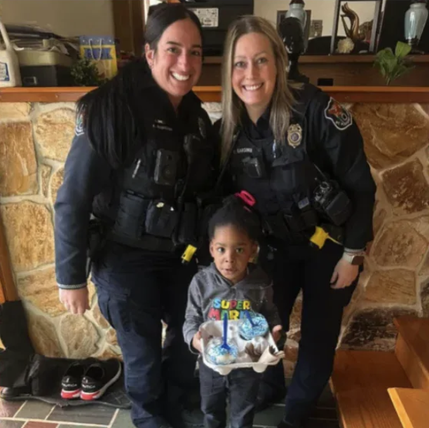 The photo shows them standing with the boy, all of them smiling. He’s holding his ice cream—justice restored, universe balanced, faith in authority confirmed. The officers look genuinely happy to have solved this particular “emergency.” His mother looks relieved that this bizarre situation resolved without trauma or actual legal consequences.