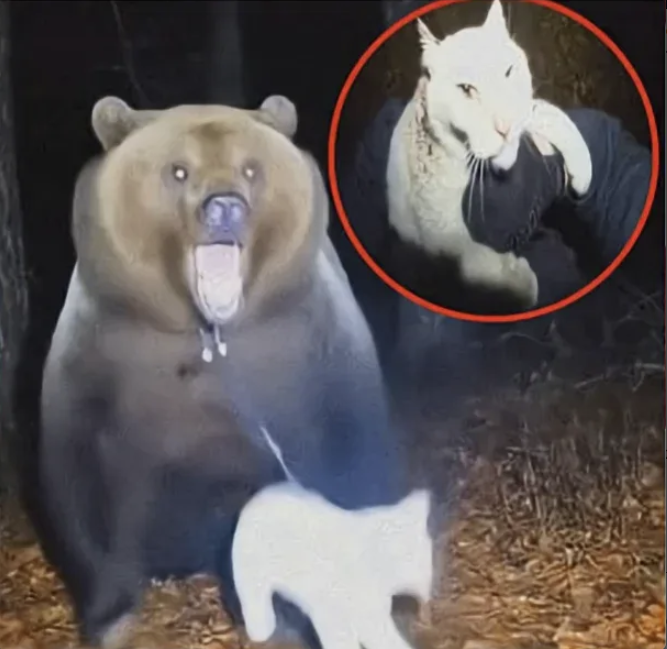 Not dead. Not limp. The cat was alive, gripped carefully in the bear’s mouth the way mother cats carry kittens. The bear wasn’t hunting or eating—it was transporting. Moving with purpose toward the woods, the cat held securely but not violently.