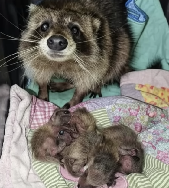 For now, they rest together under the soft hum of heat lamps, surrounded by gentle hands and quiet hearts. Four tiny raccoons, their mother by their side — a small, beating reminder that love and instinct can bridge even the narrowest gap between life and loss.