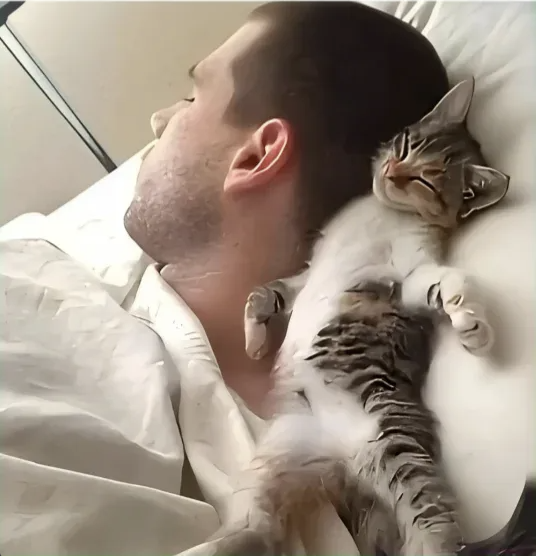 She’s still with him now. Curled up on his shoulder most nights, purring against his neck, her paws kneading softly at the fabric of his shirt. She’s grown, but not much. She’s still small, still gentle, still trusting. And every time he looks at her, he remembers that cold night, that fragile cry, and the way warmth and love can transform fear into peace in just a few hours. Sometimes, saving a life doesn’t feel like a grand gesture. It feels like wrapping something small and scared in softness and saying, without words, you’re safe now.