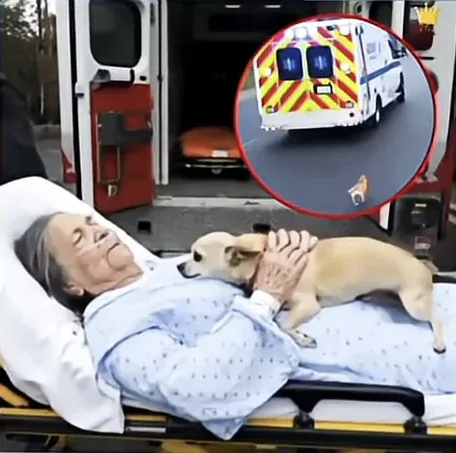 The paramedics tried to gently shoo her away. Neighbors attempted to grab her, to hold her back so the ambulance could leave. But Rosie wasn’t having it. The moment the ambulance doors closed and the vehicle started moving, Rosie bolted. She ran. Full speed. Chasing the ambulance down the street, her little legs moving as fast as they could, her eyes locked on the flashing lights ahead. Witnesses stopped in their tracks, stunned. This tiny dog was sprinting after an emergency vehicle, refusing to let her owner out of her sight.