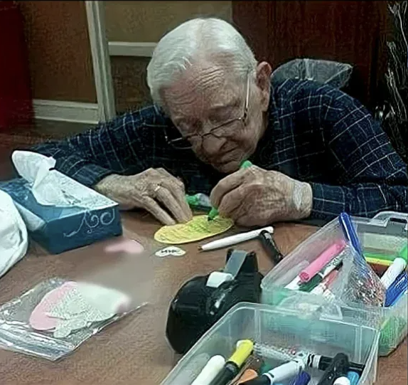 Walking into Grandpa’s house, they found him at the table, surrounded by craft supplies and papers, his elderly hands working carefully on something that demanded his complete attention.