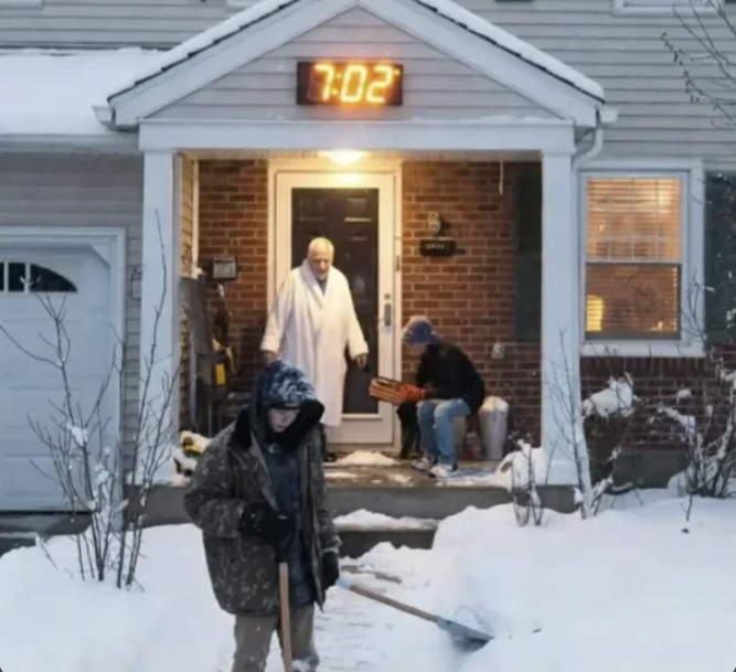 Underdressed in the freezing cold, they worked for three hours with determination. Not adequately bundled against the weather—probably lacking proper winter gear, gloves that fit well, layers that would keep them truly warm. But they worked anyway, shoveling heavy snow for three solid hours, the kind of sustained physical labor that’s exhausting for adults and even more so for children.