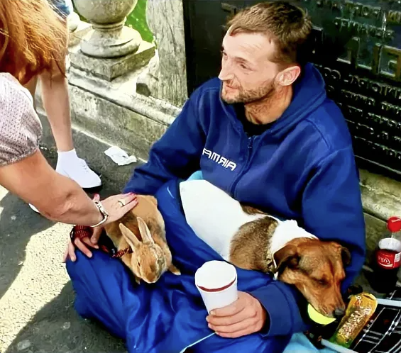 He lived on the bridge. Not by choice, but by circumstance—the kind that leaves you with nothing except the beings who stay loyal when everyone else has walked away. His family was a dog and a rabbit. Strange companions, maybe, but they were his. And they stayed.