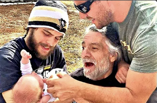 One son cradled the infant against his chest, Rivers wrapped in soft blankets, unaware of the significance unfolding around him. The other son moved close to his father, understanding without words what needed to happen. Grandpa’s hands were shaking — they always shook now — but his eyes were clear, fixed on the small face peeking out from the bundle.